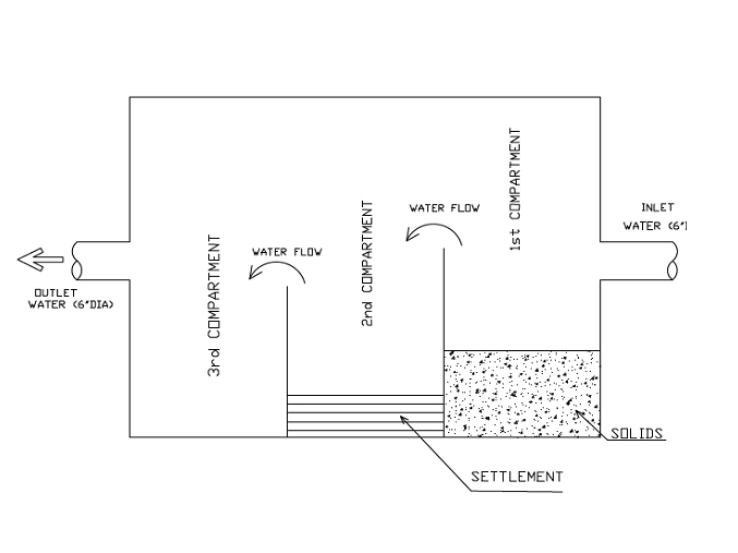 In the second compartment of tank the fine and remaining settlements will settle down at the bottom and the water will pass through section wall. - Third Section: