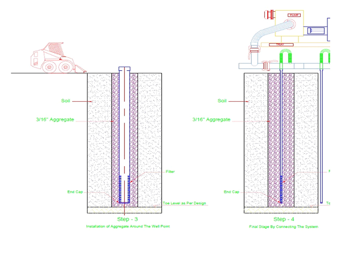 - In this type of dewatering system it is installed around the site based on the site area.